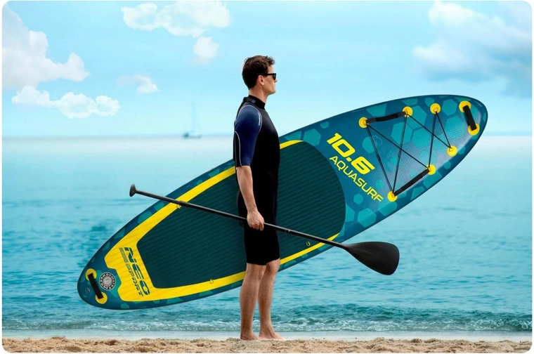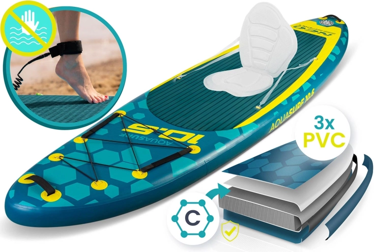 I bordi rinforzati aumentano la resistenza agli urti e all’usura, mentre la protezione UV salvaguarda il materiale dal sole. Che tu voglia pagaiata ricreativa, yoga sull’acqua o tranquille gite in acque calme, Aquasurf 10’6 è un partner affidabile per le tue avventure acquatiche.
