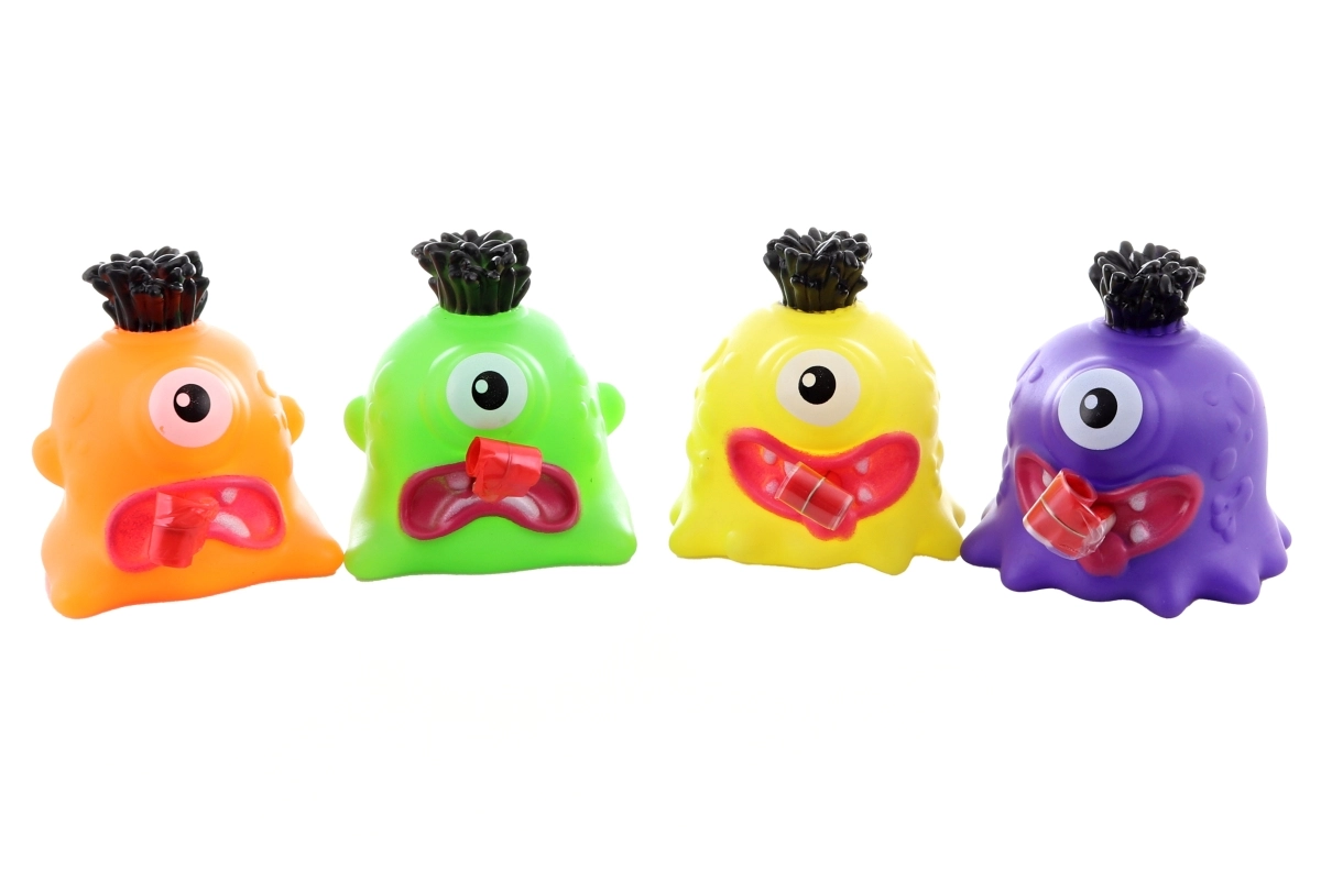 Divertente mostriciattolo da schiacciare in morbida plastica che farà felici i bambini dai 3 anni. Quando lo si preme tira fuori la lingua e fischia, stimolando il gioco e le risate. Disponibile in diversi colori a seconda della disponibilità in magazzino. Le dimensioni compatte 7 × 7 × 7 cm sono perfette per le mani dei bambini.