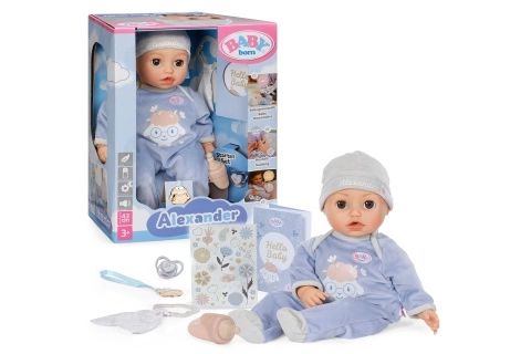 La bambola interattiva BABY born Alexander offre ai bambini dai 3 anni in su tanta allegria e momenti di tenerezza. Durante l’allattamento con il biberon o con il ciuccio si muovono bocca e occhi, dopo il pasto con un leggero colpetto sulla schiena fa il ruttino e quando e8 stanco e8 facile cullarlo per farlo addormentare in due direzioni. Con la divertente ginnastica infantile emette gioiosi suoni da bambino e ride quando lo si fa il solletico sulla pancia. Per un’esperienza ancora pif9 autentica, a volte fa anche una piccola puzzetta da bimbo.