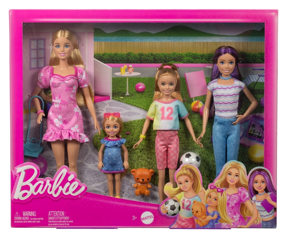 Scopri la magia del gioco con le quattro sorelle della famiglia BarbieBarbie, Skipper, Stacie e Chelsea. Eleganti bambole con arti snodati e accessori a tema (tablet, pallone, orsacchiotto, borsetta) che ispirano storie di fantasia e sviluppano creatività e competenze sociali dei bambini.