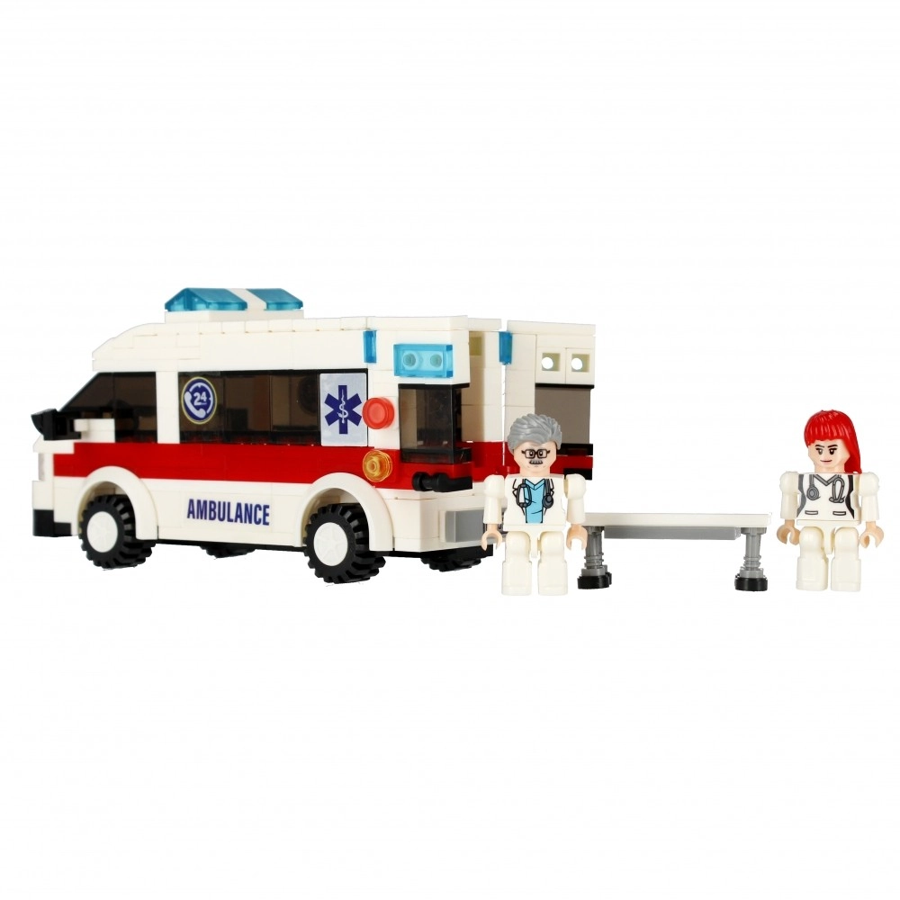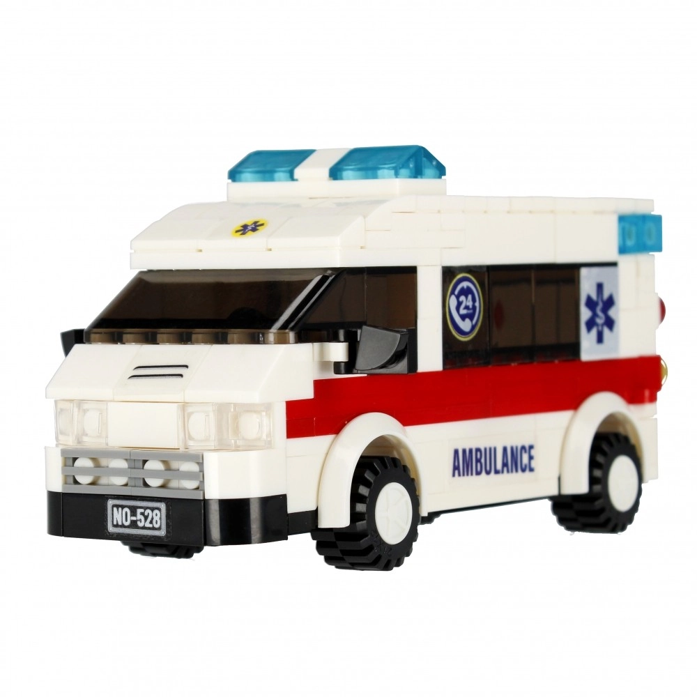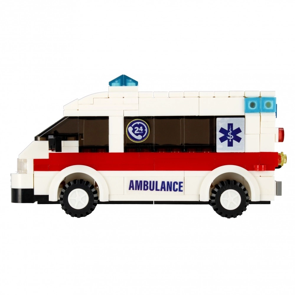 Il set di costruzione Alleblox City ambulanza offre ai bambini un’esperienza di soccorso autentica. Con mattoncini bianchi e rossi con stampe AMBULANCE costruirai un veicolo dettagliato con lampeggianti blu, luci trasparenti e ruote funzionanti. Il vano posteriore è pronto per il trasporto del paziente, e parti all’azione con due minifigure e la barella.