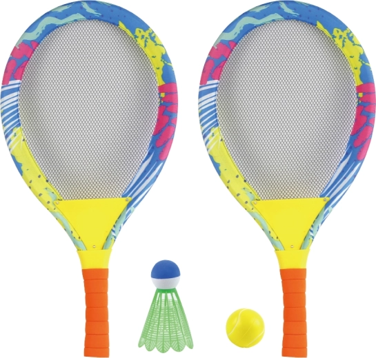 Questo set da esterno colorato porta ai bambini la gioia del movimento e lo sviluppo della motricità. Grazie alle corde morbide e alle palline leggere, i bambini imparano facilmente le basi del tennis e del badminton senza sforzi inutili o rischi di infortunio. Le ergonomiche impugnature in schiuma si adattano perfettamente alle piccole mani dei bambini, garantendo una presa sicura e comoda.