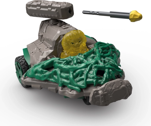 Scopri l’emozione della giungla con un veicolo dal design accattivante che si fa strada nel mondo di ELDRADOR. Il set compatto include una figurina trasparente gialla con criniera di leone e un veicolo a reazione manovrabile con armatura di liane. Il lanciagranate superiore girevole permette di caricare un dardo con cristallo e mirare con precisione al bersaglio.