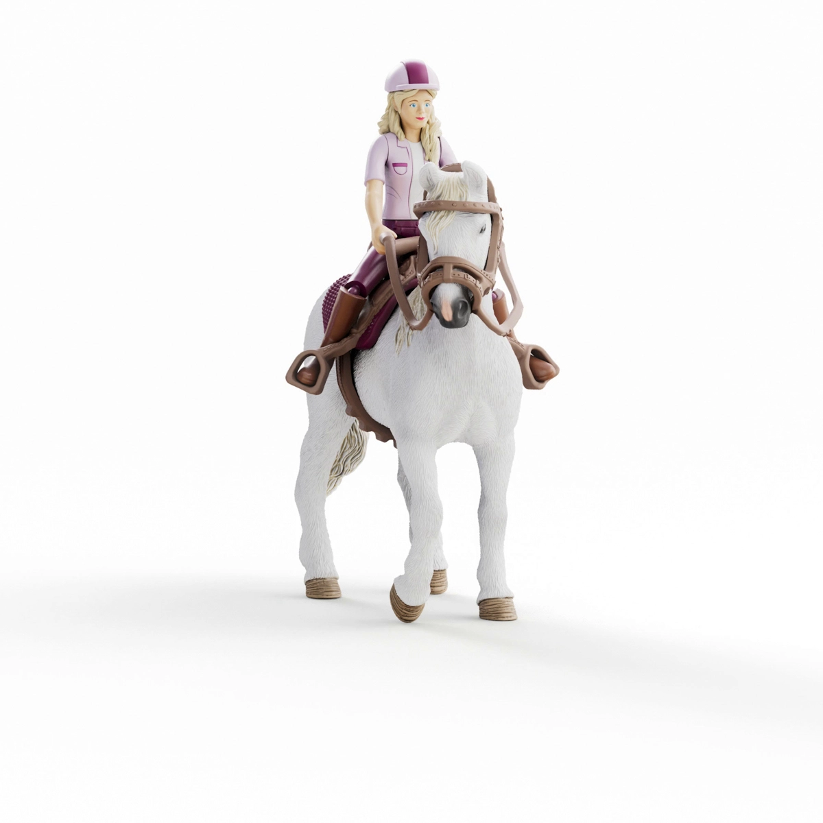 La figura di Sofia è completamente snodabile, quindi si siede facilmente in sella e tiene le redini. Sella e briglia sono rimovibili, favorendo lo sviluppo della motricità fine e della fantasia. Il set fa parte del mondo Schleich Horse Club e si combina perfettamente con altri accessori e scuderie per cavalli.