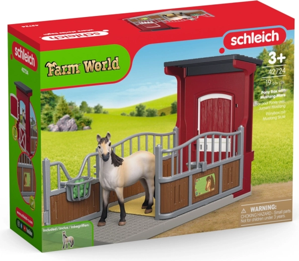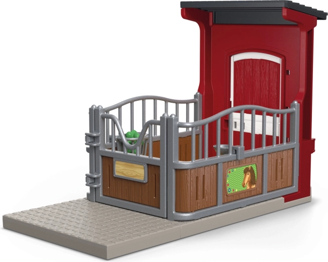 Il box rosso dal design elegante offre alla giumenta mustang un rifugio accogliente dopo una lunga giornata. All’interno trovi un pavimento con paglia, una mangiatoia metallica con mele verdi e una ciotola dell’acqua. Le porticine si aprono per posizionare facilmente il cavallo e creare scenari di gioco. La targhetta frontale può essere personalizzata con il proprio nome: basta scegliere!