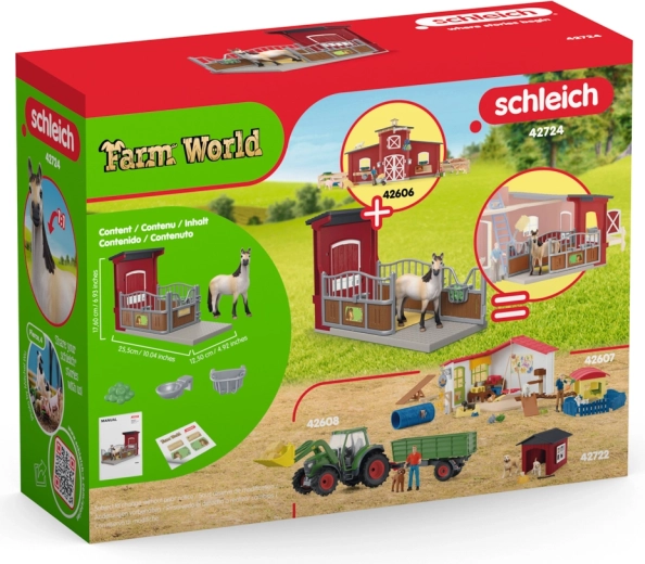 Il set è ideale per sviluppare fantasia e motricità fine. Si distingue per la lavorazione dettagliata, le texture realistiche e la struttura resistente adatta al gioco quotidiano. Può essere combinato con la grande fattoria (42606) e la grande scuderia (42605) Schleich per un mondo di gioco ancora più ampio.