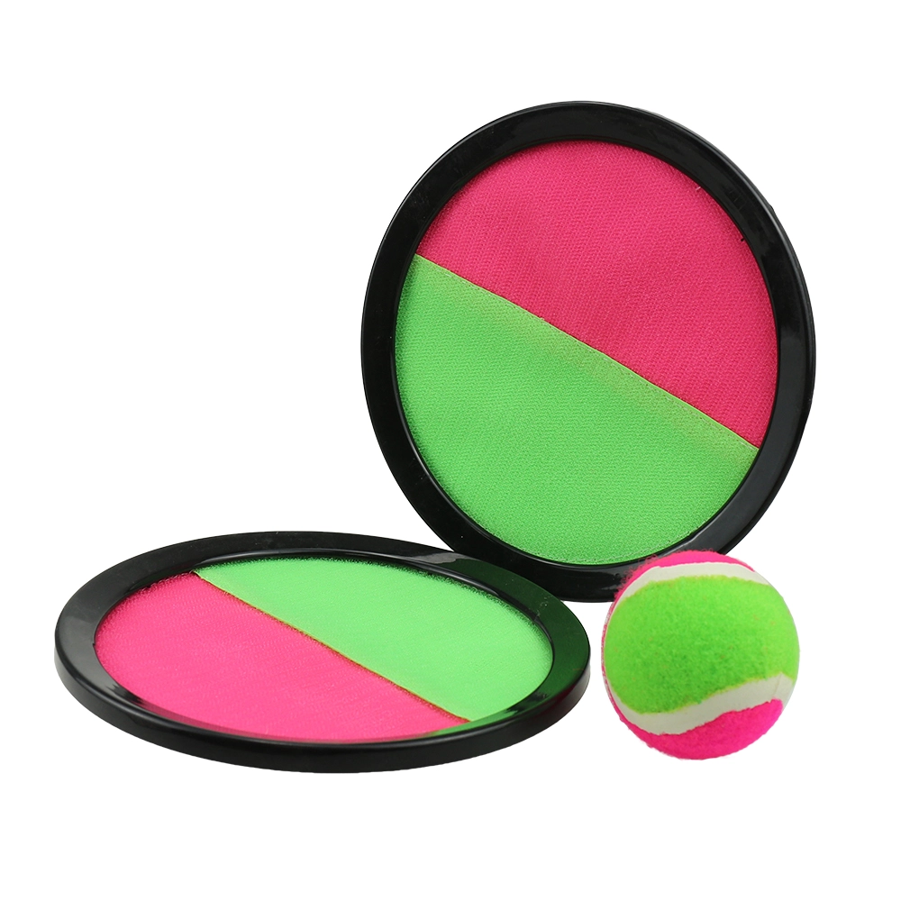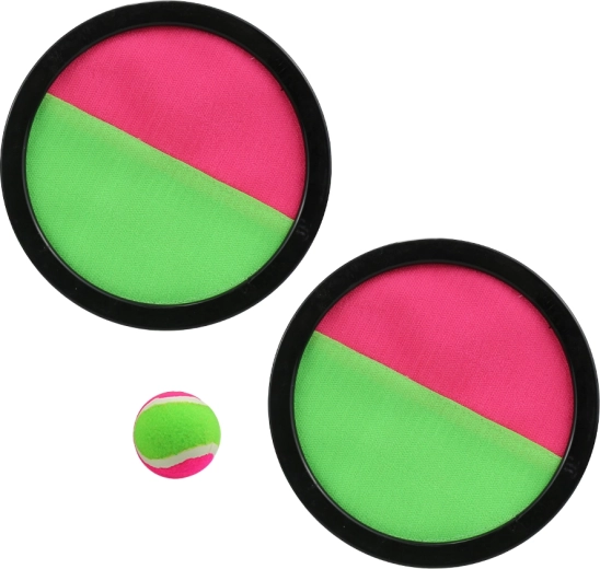 Goditi un divertimento attivo in spiaggia e in giardino con questo colorato set da presa. Un gioco per due giocatori che sviluppa riflessi rapidi, precisione di lancio e coordinazione occhio-mano. La pallina si cattura facilmente sulle piastre rotonde con velcro, che grazie al cinturino regolabile rimangono comodamente fissate alla mano.