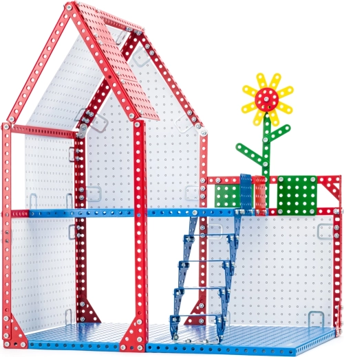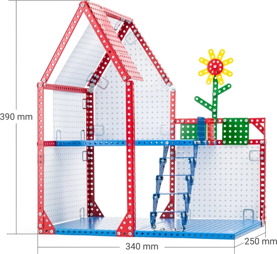 Scopri il mondo creativo con il kit di costruzione in metallo MERKUR, con cui realizzerai una casetta di bambole a due piani. Il set con 345 pezzi sviluppa motricità fine, pensiero logico e pazienza. I pezzi si uniscono con viti; il modello finito ha 2 piani con scala e pareti delle stanze da dipingere. Compatibile con il set 48018 – mobili. Confezione ecologica.