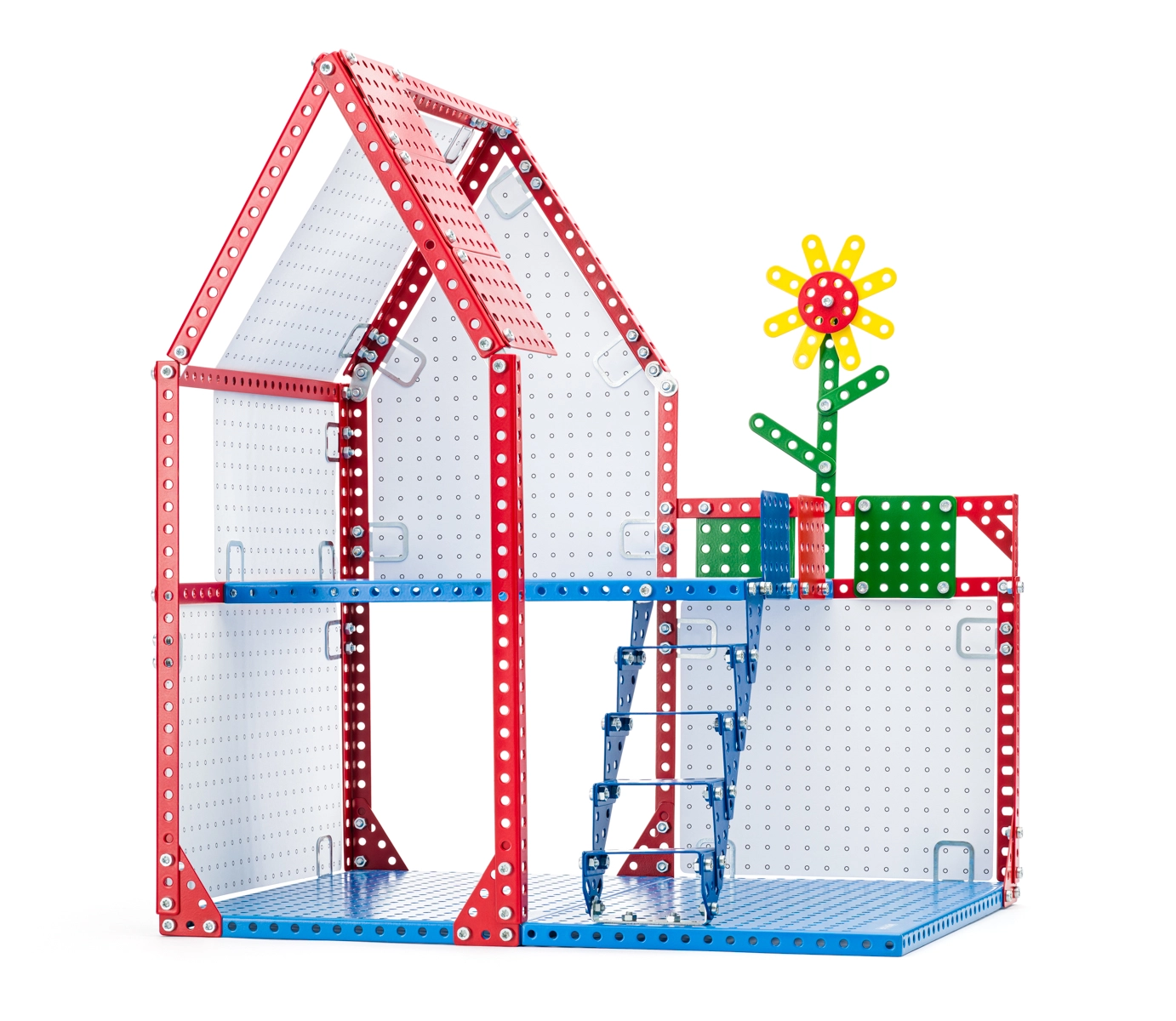 Costruisci per i bambini una realistica casetta di bambole a due piani del leggendario kit di costruzione ceco MERKUR. I pezzi in metallo si collegano facilmente con viti e dadi, così i piccoli costruttori allenano destrezza, immaginazione spaziale e abilità tecniche. Il modello finito offre una scala per il secondo piano e otto elementi di parete che i bambini possono dipingere a mano.