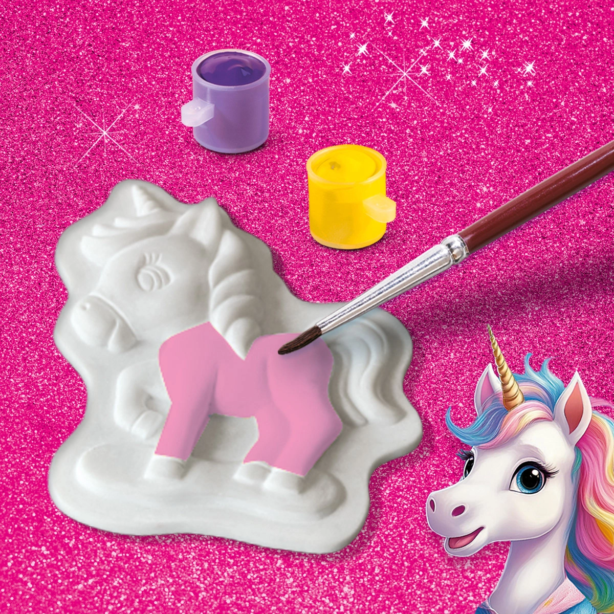 Scoprite la magia del fai-da-te con il set per colata e pittura, con cui potete creare fino a 10 adorabili figurine di unicorni. Include tutto il necessario – stampo per colata, 300 g di gesso, 6 vivaci colori a tempera, colla glitter oro e argento e pennello. Facile da usare, divertimento fantastico per bambini dai 5 anni e per adulti amanti della creatività.