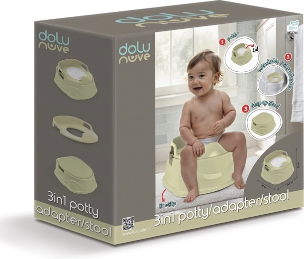 Pratico vasino per bambini 3 in 1 in colore verde chiaro che combina vasino, riduttore per WC e sgabello. Grazie ai piedini antiscivolo, alla forma confortevole e all'inserto facilmente lavabile è ideale per l’allenamento al vasino. Adatto ai bambini dai 18 mesi, portata fino a 25 kg.