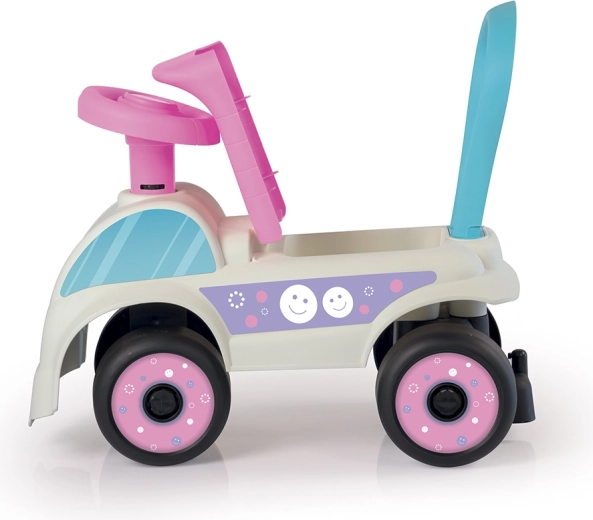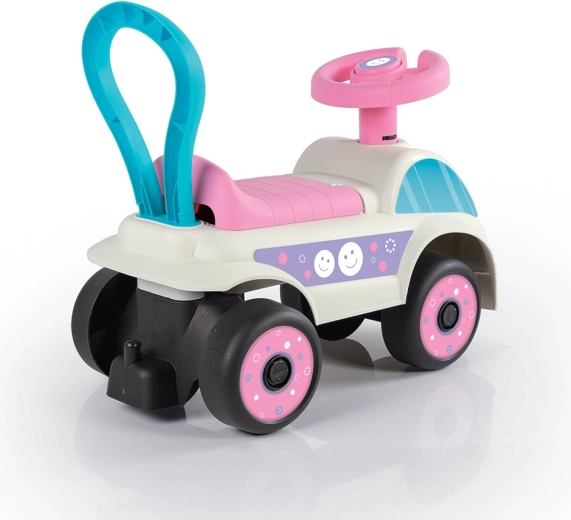 La struttura in plastica è leggera ma resistente e facilita la maneggevolezza; le ruote larghe garantiscono stabilità e il clacson aggiunge divertimento. Il pratico vano portaoggetti sotto il sedile accoglie piccoli giocattoli e tesori raccolti durante le uscite. Il cavalcabile è un ottimo compagno per il gioco attivo quotidiano e per lo sviluppo delle abilità motorie.