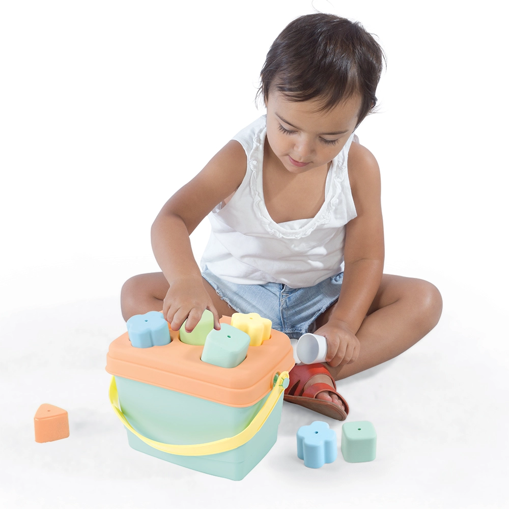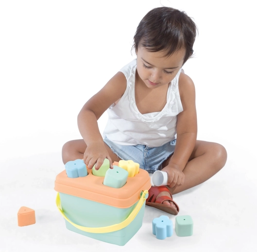 I bambini inseriscono le forme nelle aperture corrispondenti, esercitando la motricità fine, la pazienza e il ragionamento logico. La pratica maniglia facilita il trasporto e, dopo il gioco, tutti i pezzi possono essere riposti nel secchiello: niente disordine e tutto sempre a portata di mano.
