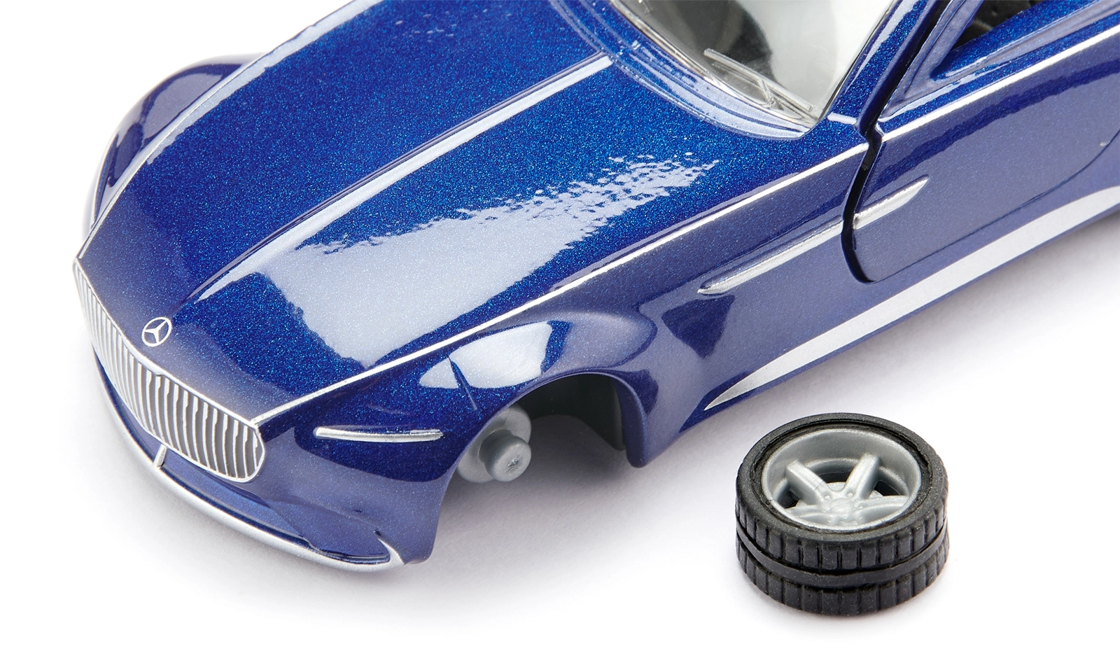 Grazie alla struttura in metallo il modello è resistente all’uso quotidiano, mentre i dettagli in plastica completano l’aspetto realistico – dalla griglia del radiatore alle ruote di design. Gli pneumatici in gomma assicurano una marcia scorrevole su superfici piane, rendendo il modello ideale sia per la fantasia dei bambini sia per un’esposizione elegante.