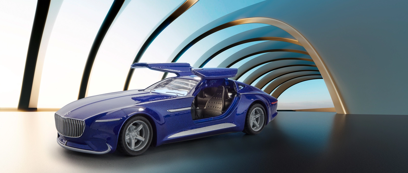 Lavorazione precisa della carrozzeria, calandra pronunciata e linee ricercate conferiscono al concept MERCEDES‑MAYBACH un aspetto lussuoso in scala 1:50.