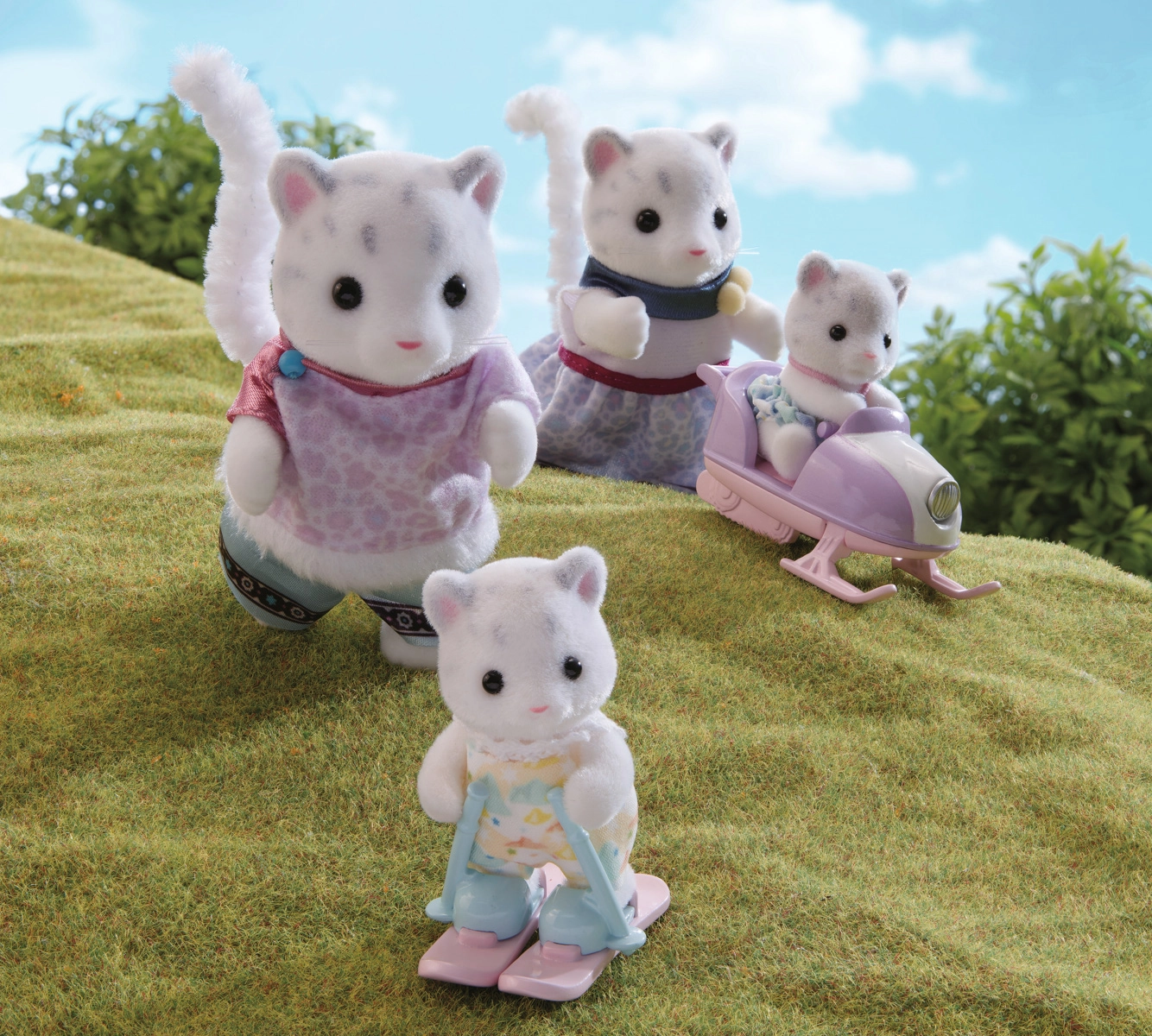 Questa famiglia di leopardi delle nevi, curata nei minimi dettagli, entusiasmerà bambini e collezionisti. La mamma, il papà e due cuccioli hanno una soffice superficie vellutata e lunghe code caratteristiche. Grazie agli accessori invernali, i bambini possono creare storie dinamiche sulla neve, guidare lo scooter o insegnare ai cuccioli a sciare.