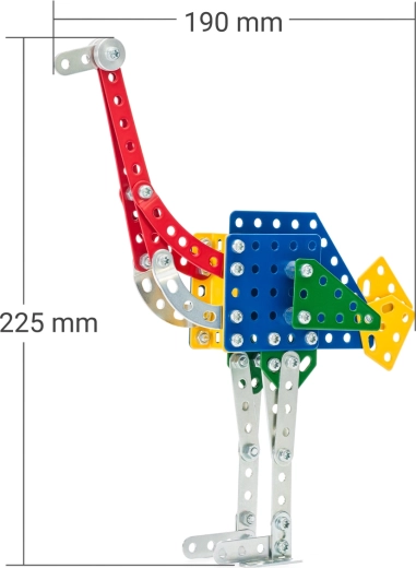 Il set MERKUR Zoo – struzzo è una scelta eccellente per i bambini che amano la tecnologia, gli animali e il fai-da-te. I pezzi in metallo di qualità e i solidi collegamenti a vite garantiscono stabilità e lunga durata del modello. Il livello di difficoltà 3 offre una sfida divertente e stimola manualità e immaginazione.