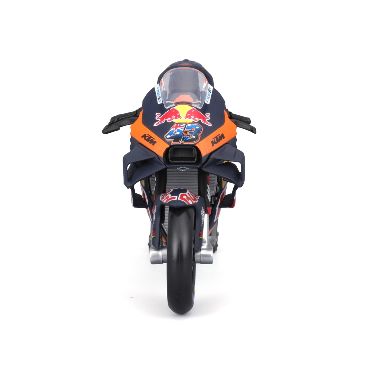 Questo modello realistico MAISTO riproduce la moto da gara KTM RC16 nei colori Red Bull per la stagione 2023 con il numero 43 – Jack Miller. Grazie al corpo in metallo di qualità, alle stampe precise degli sponsor e ai dettagli funzionali, sembra una miniatura di una vera MotoGP.