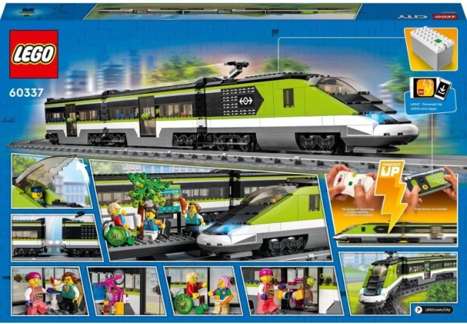 Costruisci la tua ferrovia con il LEGO CITY Treno ad alta velocità 60337. Ottieni una locomotiva telecomandata con fari anteriori dimmerabili (Powered Up), carrozza ristorante e carrozza passeggeri, marciapiede, 24 binari e 6 minifigure per storie infinite e gioco creativo.