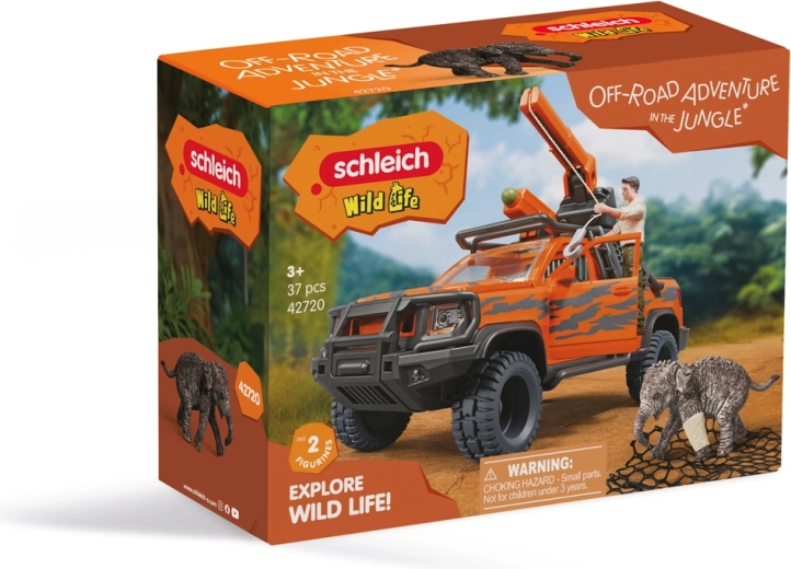 Questo avventuroso veicolo di soccorso affronta anche i terreni più impegnativi: parcheggia vicino all’animale, spara la rete dal cannone sul tetto e, con l’argano funzionante, sposta in sicurezza il piccolo elefante sul pianale. Le porte, il cofano e il portellone apribili rendono il gioco più autentico, mentre il ranger Tom, con braccia e gambe snodate, effettua le cure usando la benda inclusa.