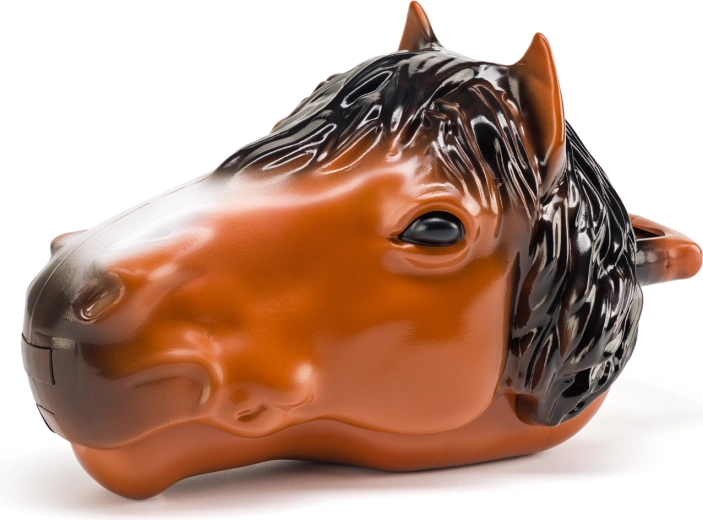 Questa originale testa di cavallo racchiude tutto ciò di cui i piccoli amanti dei cavalli hanno bisogno per ore di gioco creativo. Il box portaoggetti a forma di testa di cavallo contiene tutte le figurine, si apre facilmente premendo il pulsante sotto il muso e, grazie al sistema a scatti, puoi impostare diversi angoli di apertura della bocca per riporre ed esporre comodamente. La struttura leggera con pratico manico permette di portare il ranch ovunque.