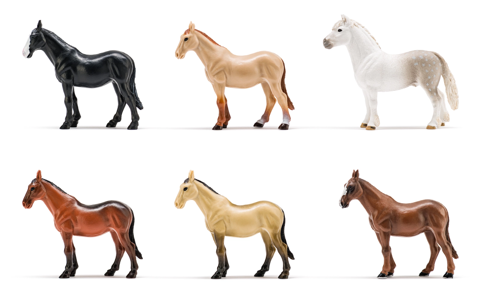 All’interno trovi 6 cavallini finemente modellati in vari colori, tra cui il cavallo Akhal-Teke e il grigio pomellato. Confezionato in open box con stampa interna di pascoli, che funge da scenografia di gioco o da originale decorazione espositiva. Realizzato in plastica di qualità e resistente per un divertimento duraturo.