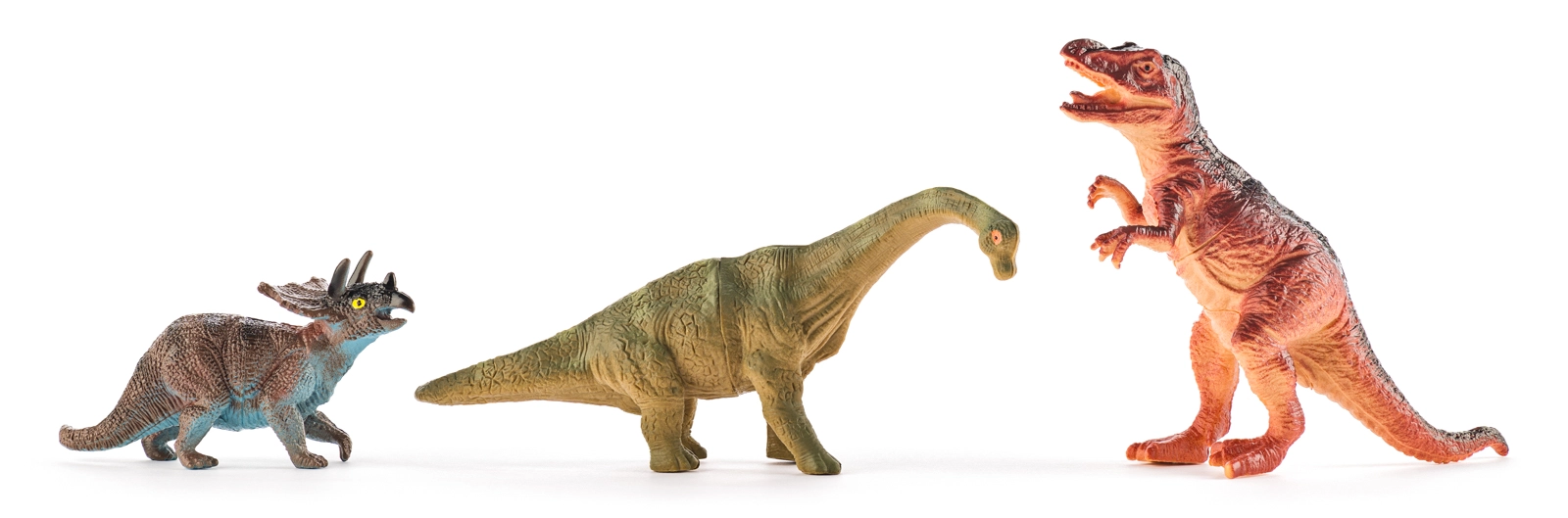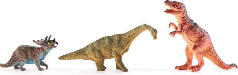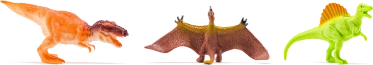 Diversi tipi e dimensioni di dinosauri stimolano la fantasia, la narrazione di storie e le prime conoscenze delle creature preistoriche.
