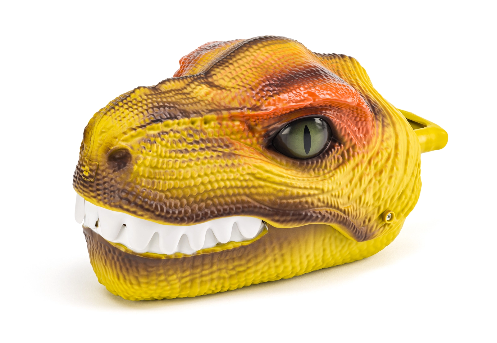 Premi il pulsante sotto il muso e la bocca si apre. Il click system consente di impostare diversi angoli per estrarre e riporre comodamente le figurine.