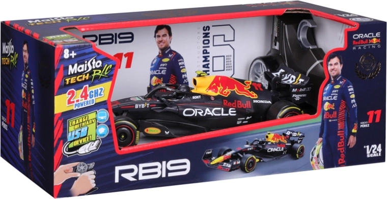 Prova la velocità e la precisione con la macchina RC ORACLE RED BULL RACING RB19 ufficialmente licenziata in scala 1:24. Il modello del pilota Sergio Pérez offre controllo a 2,4 GHz per fino a 4 giocatori, batteria Li‑ion ricaricabile via USB, radiocomando a pistola e portata fino a 35 m – ideale per il divertimento in casa e all’aperto.