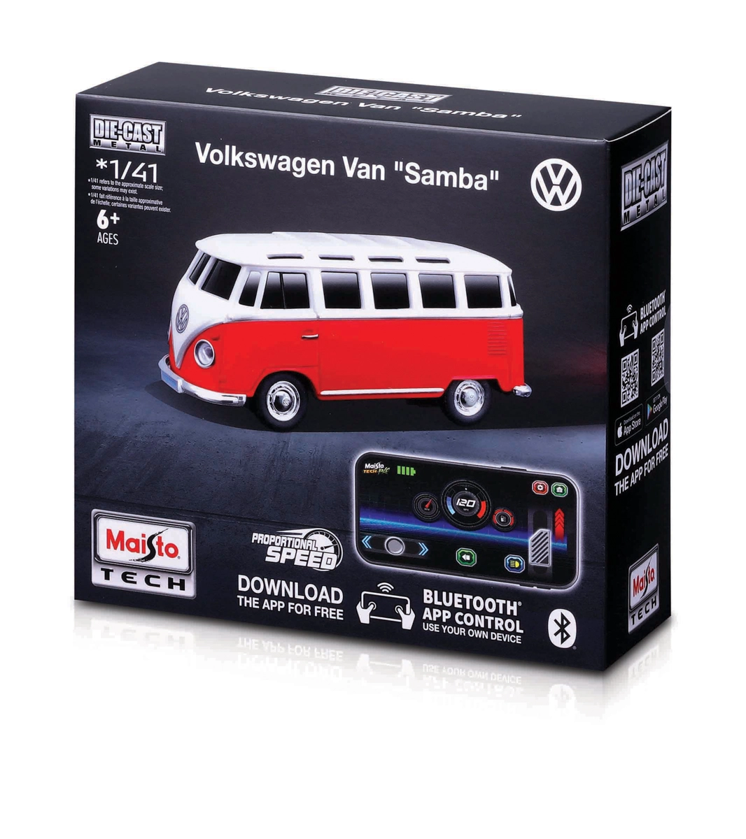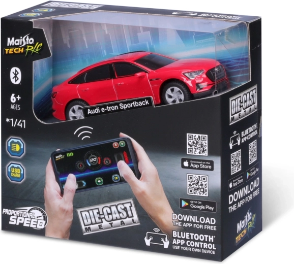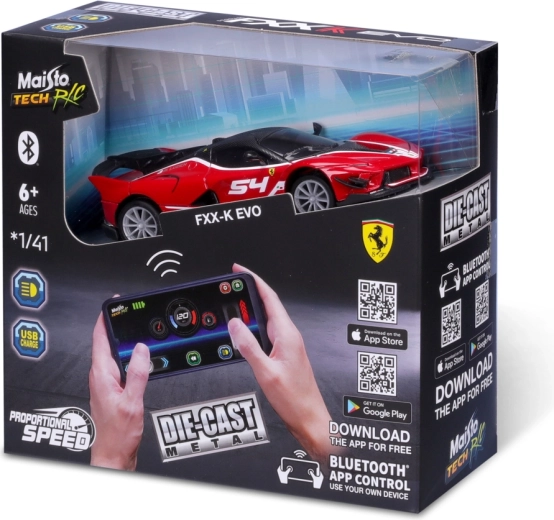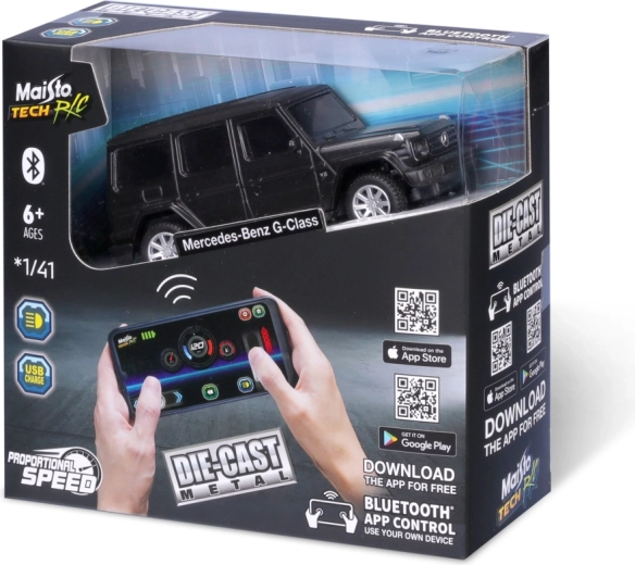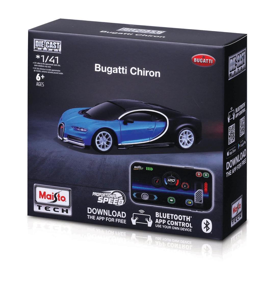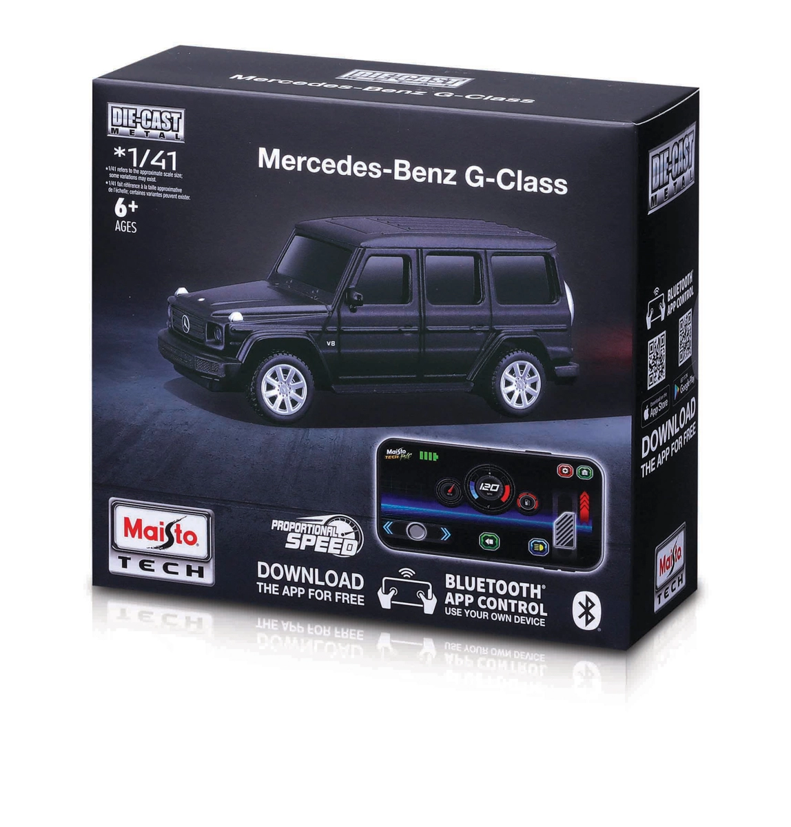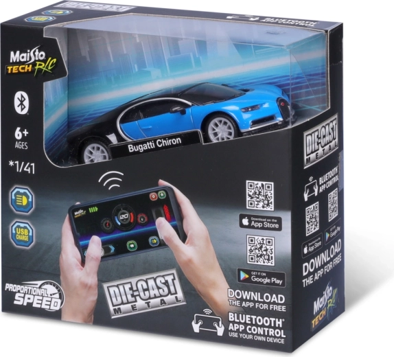 Scopri il divertimento di nuova generazione con le mini auto RC Maisto in metallo pressofuso in scala 1:41, controllate tramite smartphone grazie al Bluetooth 5.0. Goditi una guida fluida con tecnologia 2,4 GHz, regolazione proporzionale della velocità, realistiche luci LED e comoda ricarica USB‑C. Ogni confezione include un modello selezionato casualmente: potenza e divertimento sono letteralmente nelle tue mani.