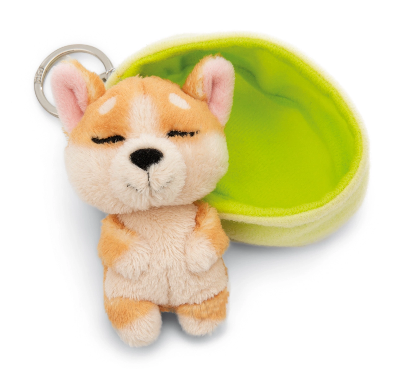 Il dolce portachiavi NICI con un cagnolino Welsh Corgi che dorme in un morbido astuccio verde chiaro è un regalo perfetto e un portafortuna. Grazie al robusto anello in metallo si aggancia facilmente a chiavi, zaino o portafoglio. La collezione Sleeping Pets e il marchio NICI GREEN garantiscono un peluche soffice con imbottitura in materiali riciclati e un approccio responsabile verso la natura.