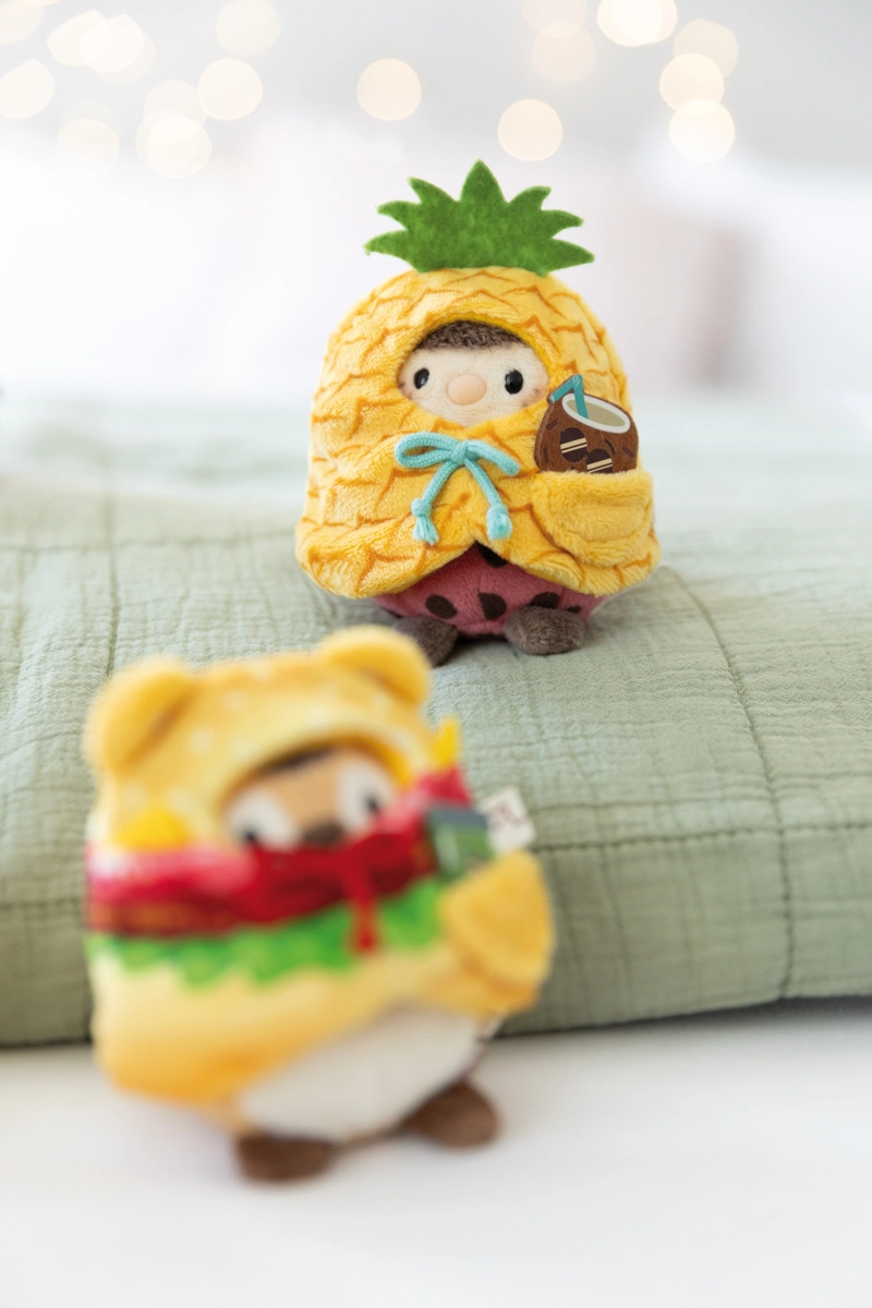 Scopri il magico mondo MyMochi con la coccinella Dozz, che ama viaggiare. Con il soffice costume da ananas con foglioline verdi e le tenere antenne, diventerà il tuo portafortuna. Il set include anche una piccola bevanda al cocco e un rifugio-ananas in cui Dozz può riposare o nascondersi durante il gioco.