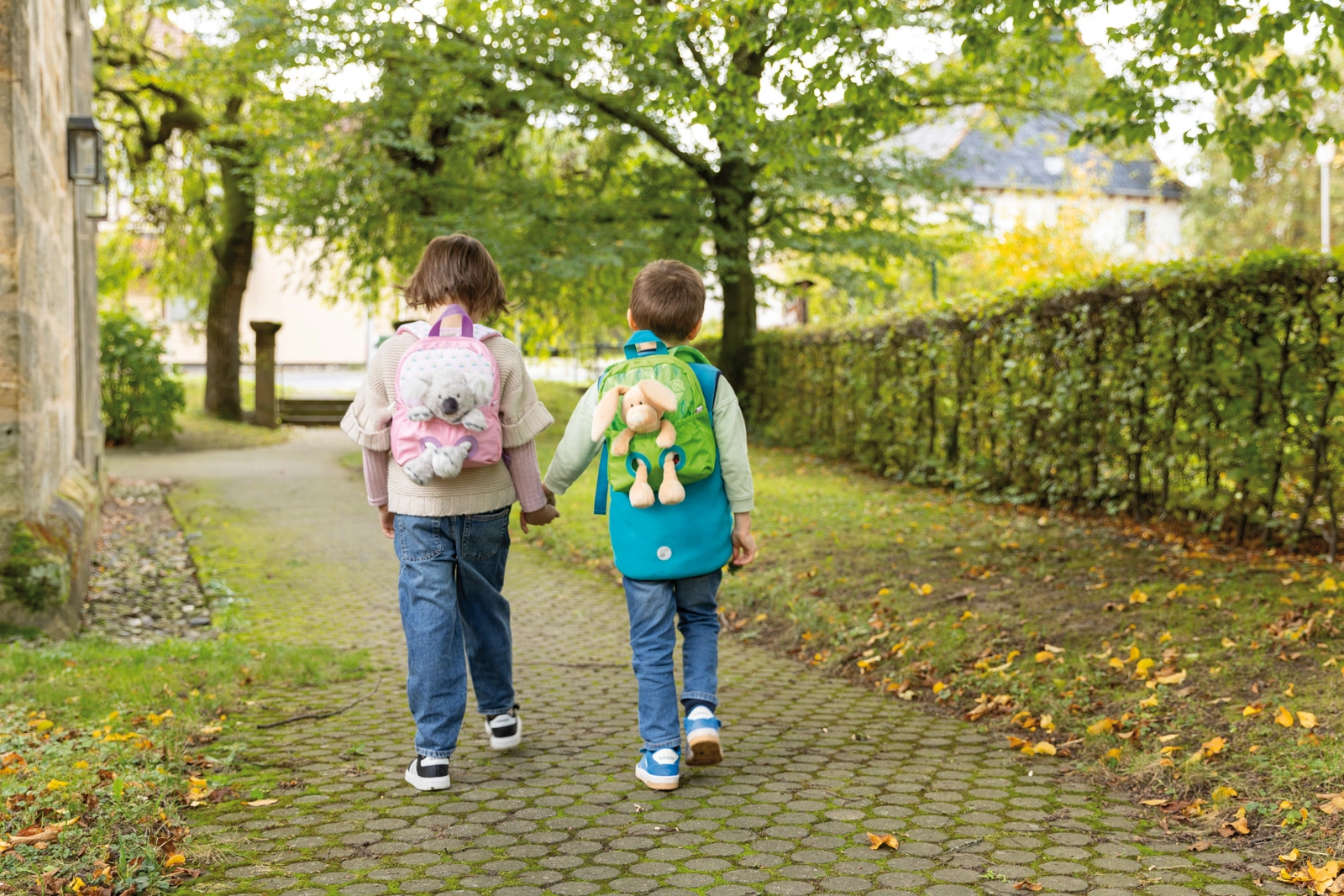 Il dolce zainetto per bambini NICI in design verde con motivo di foglioline unisce praticità per l’uso quotidiano a un giocattolo di peluche divertente. Il morbido coniglietto da 25 cm è fissato nella tasca frontale con un elastico, ma può essere facilmente rimosso per giocare. Lo zainetto offre spallacci imbottiti e regolabili, schienale morbido e una tasca principale con cerniera per riporre in sicurezza i piccoli oggetti. Un compagno perfetto per l’asilo, le gite e le visite dai nonni.