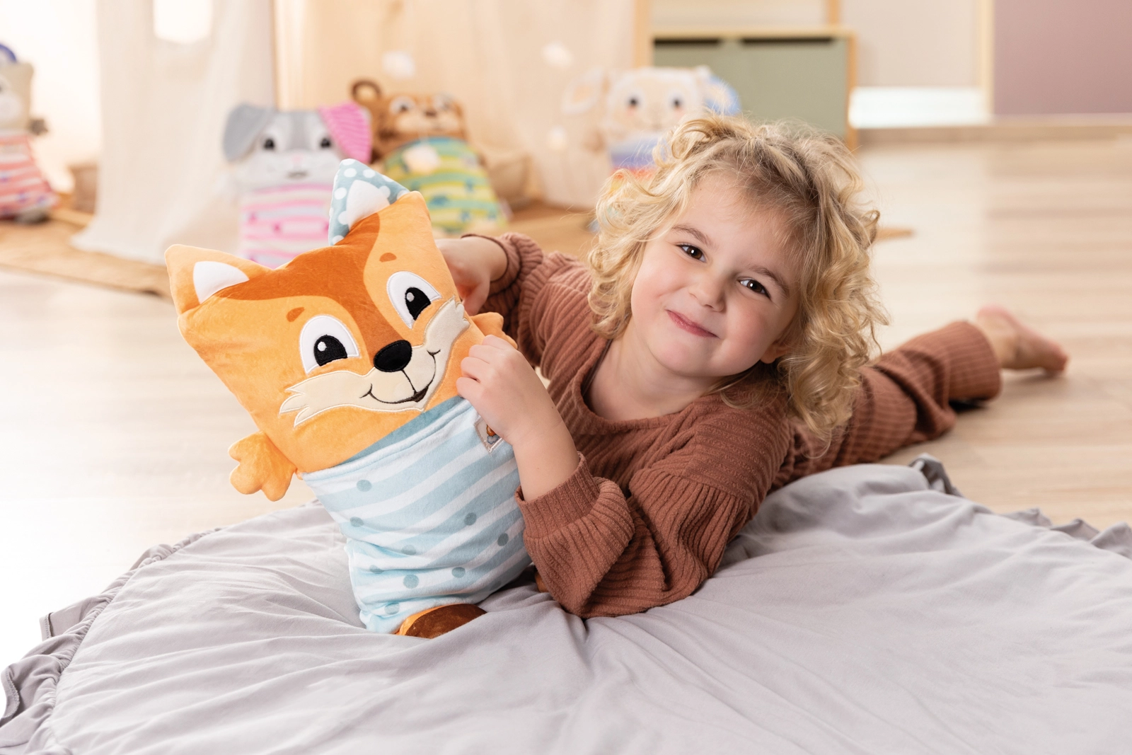 Scoprite la magia della volpe NICI Cosidoos – un morbido compagno che con un semplice capovolgimento cambia in base al momento della giornata. Di giorno stimola il gioco creativo e la fantasia, la sera si trasforma in un tenero alleato per un addormentamento sereno. Grazie al peluche di alta qualità, super morbido, è un piacere coccolarla, abbracciarla e usarla come cuscinetto.