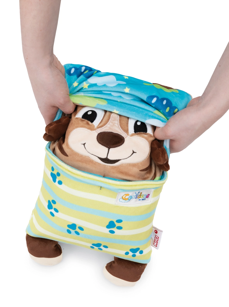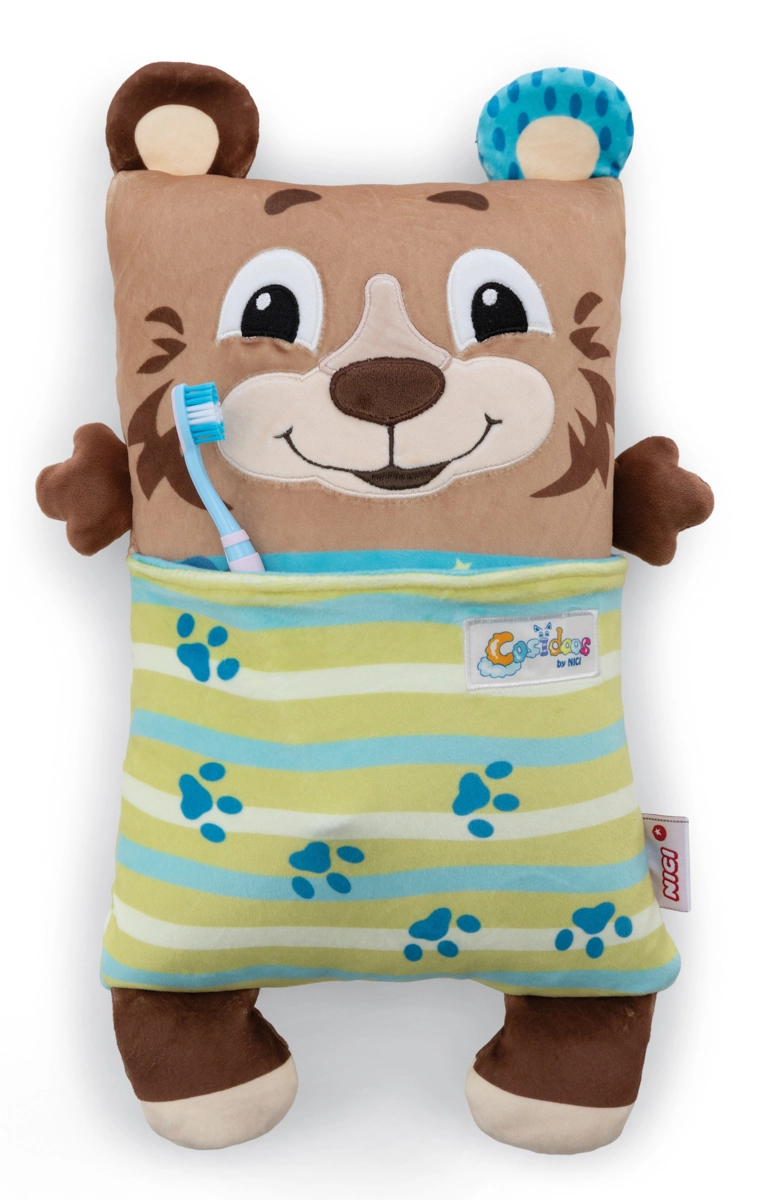 Il dolce orsetto di peluche NICI Cosidoos è un compagno double-face: pupazzo e cuscinetto, che con un solo gesto si trasforma da allegro amico del giorno in calmo compagno della buonanotte. Morbido peluche super soffice, tasche pratiche per i piccoli oggetti e facile ribaltamento favoriscono gioco, fantasia e un sonno sereno. Ideale per bambini dai 12 mesi.