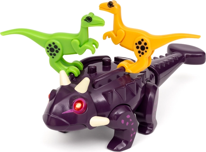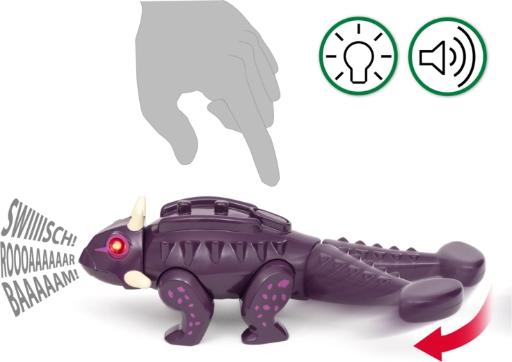 L'anchilosauro prende vita grazie agli occhi LED rossi e agli effetti sonori che il bambino può attivare con un movimento. Aggiunge tensione e realismo al gioco.