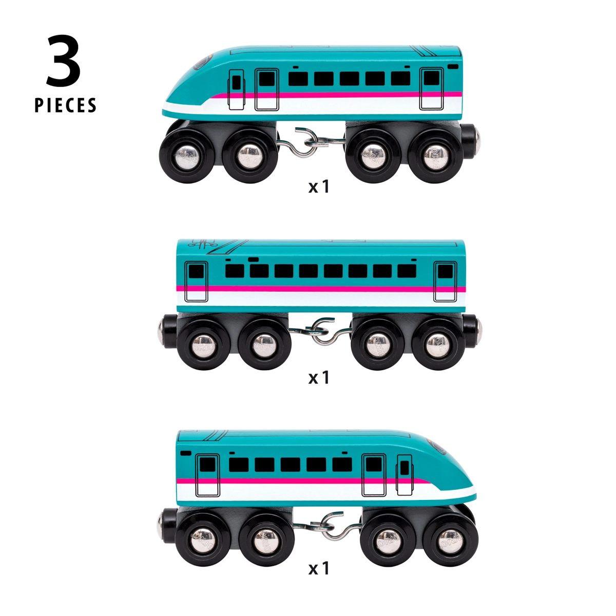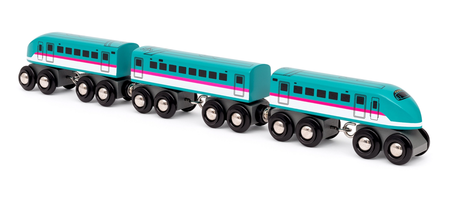 Regala ai bambini l’iconico treno ad alta velocità ispirato al vero Shinkansen Hayabusa E5 (320 km/h) giapponese. Questo set in legno offre un aspetto autentico, una struttura resistente e un movimento scorrevole grazie ai carrelli doppi con otto ruote su ogni elemento. Un complemento ideale per tutte le comuni piste ferroviarie in legno.