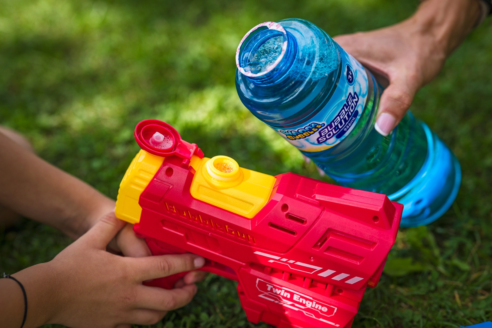 Perfetto per ricaricare pistole spara bolle e altri giocattoli a bolle – travaso rapido e pulito senza sprechi inutili.