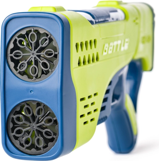 Due bocche di uscita e un sistema a doppio motore soffiano una vera e propria tempesta di bolle – ideale per feste e giochi all’aperto.