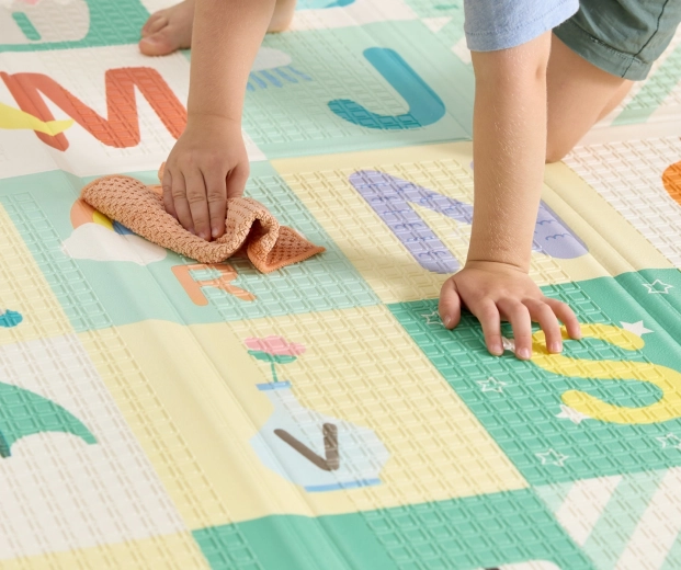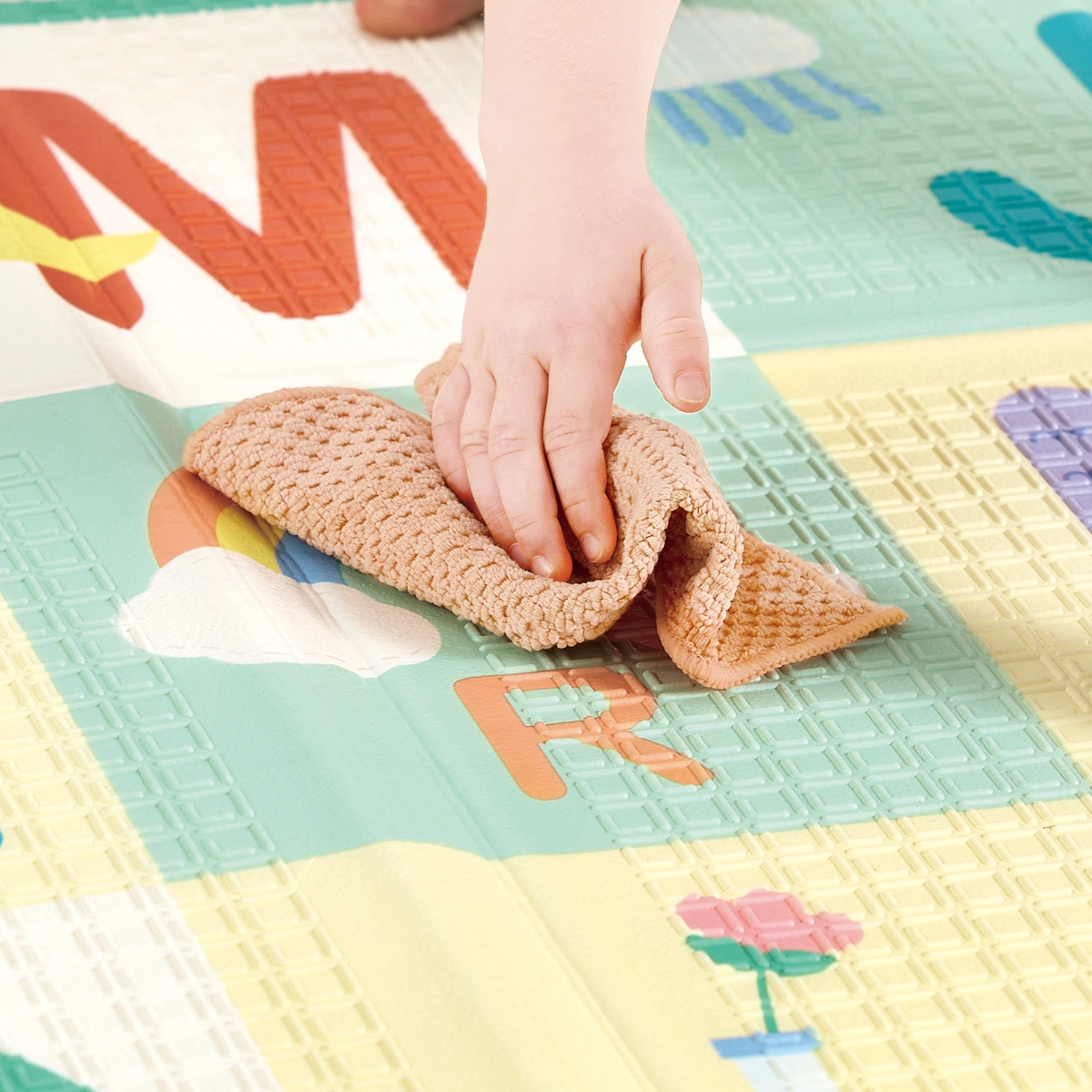 Scopri un tappetino ampio, morbido e facile da mantenere per neonati e bambini piccoli. Offre una grande area di gioco, un alfabeto colorato per l'apprendimento e sul lato opposto una scala di misurazione. È impermeabile, antiscivolo e si piega rapidamente per un riponimento salvaspazio – ideale per il gioco quotidiano, il gattonamento e il relax.