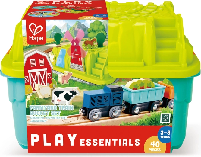 Scopri il fascino della campagna con questa colorata pista del trenino che si trasforma in una fattoria giocattolo. I bambini si divertiranno a guidare la locomotiva, trasportare animali e fieno e costruire i binari. Dopo il gioco, tutto si ripone facilmente nel box, che capovolto diventa parte dell'ambientazione. 40 pezzi, sviluppo di fantasia e collaborazione, compatibile con Hape e BRIO, materiali sicuri e ipoallergenici.