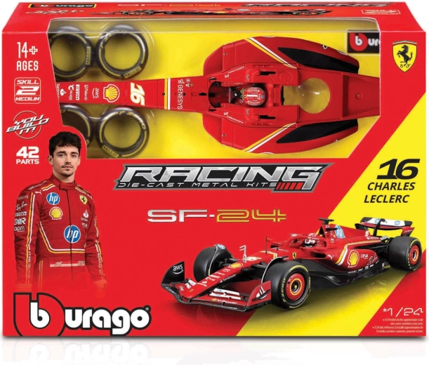 Scopri il modello realistico della collezione RACING MODEL KIT e goditi la soddisfazione del montaggio fai-da-te. Questa vettura FERRARI SF-24 in scala 1:24 riproduce fedelmente il design da gara della stagione 2024, incluso il numero di partenza 16. I pezzi combaciano perfettamente, quindi per l’assemblaggio non servono colla né vernici.