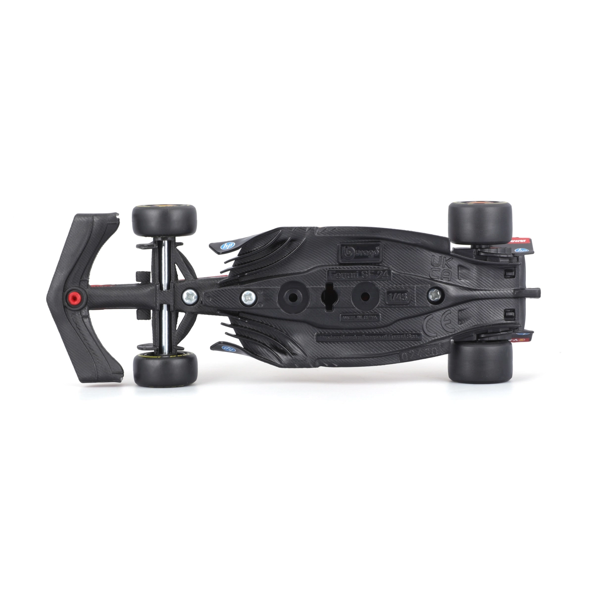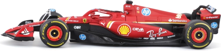 Decalcomanie degli sponsor fedelmente riprodotte, alette aerodinamiche, halo e pneumatici slick corrispondono esattamente alla Ferrari SF-24 della stagione 2024.