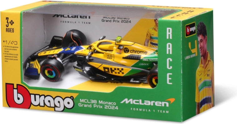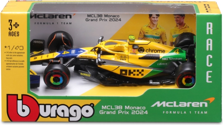 Goditi il modello realistico del monoposto F1 McLaren MCL38 (2024) – Senna Edition firmato Bburago. Proporzioni fedeli, colori con licenza e numero di gara di Lando Norris #4 entusiasmeranno collezionisti e giovani appassionati di motori. Il modello è realizzato in metallo pressofuso (die‑cast) con dettagli in plastica di qualità per la massima autenticità.