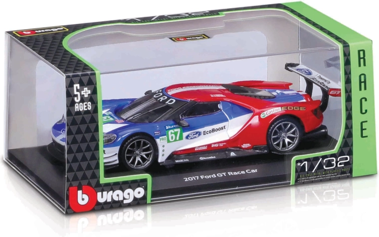 L'iconica collezione Bburago Race propone una selezione di speciali da corsa in scala 1:32. Carrozzerie in metallo con dettagli in plastica, forme fedeli, livree sportive e ruote libere offrono un aspetto realistico e un'ottima esperienza di gioco. Confezionato in un attraente display box da 12 pezzi con mix casuale di modelli.
