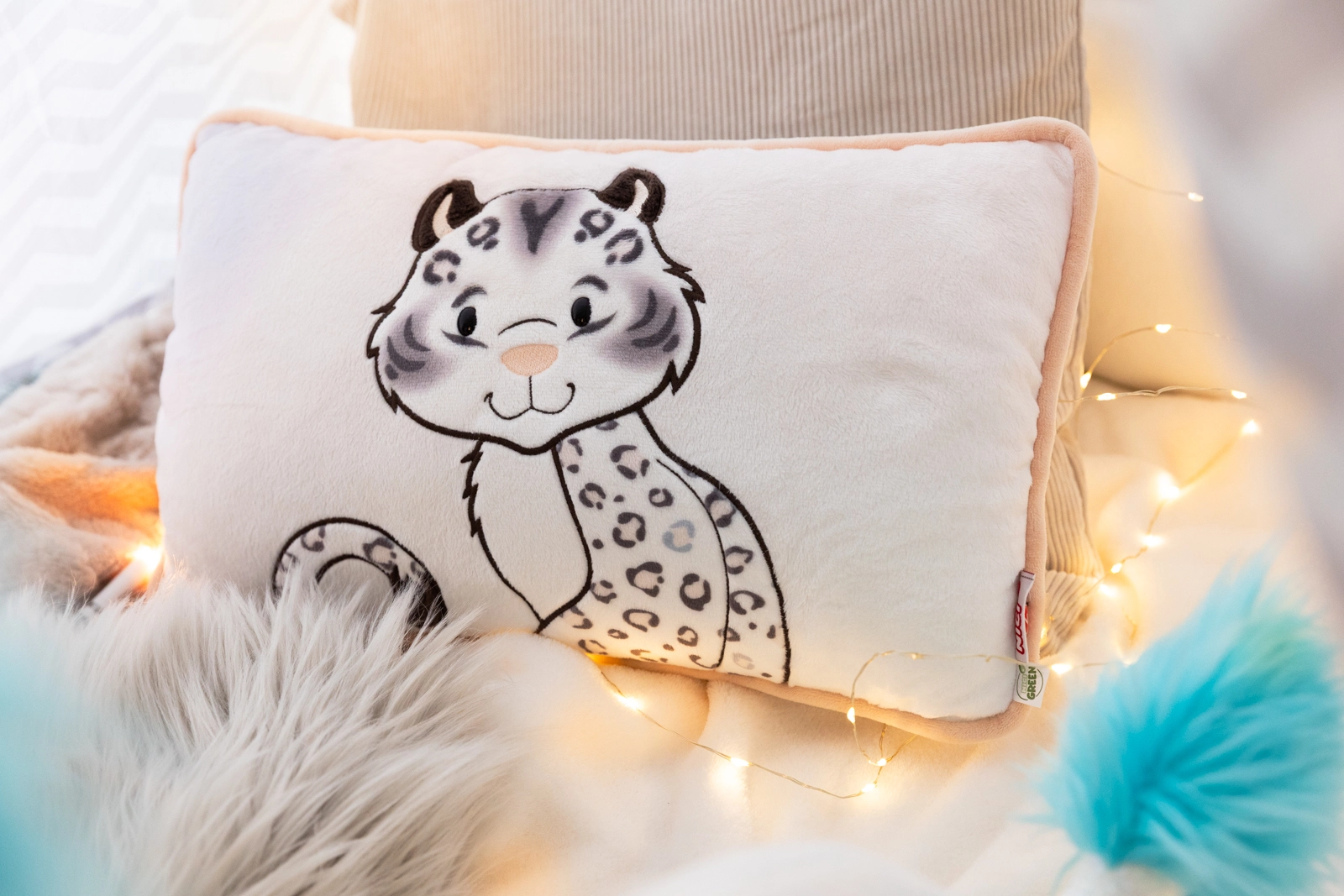 Il cuscino in peluche rettangolare NICI GREEN porta in casa il fascino della natura invernale. Il fronte è decorato con una pregiata applicazione in peluche del leopardo delle nevi Eleni Snowbell, mentre il retro presenta un elegante motivo leopardato. L’imbottitura soffice e la superficie vellutata invitano al relax, alle coccole e a una breve pausa.