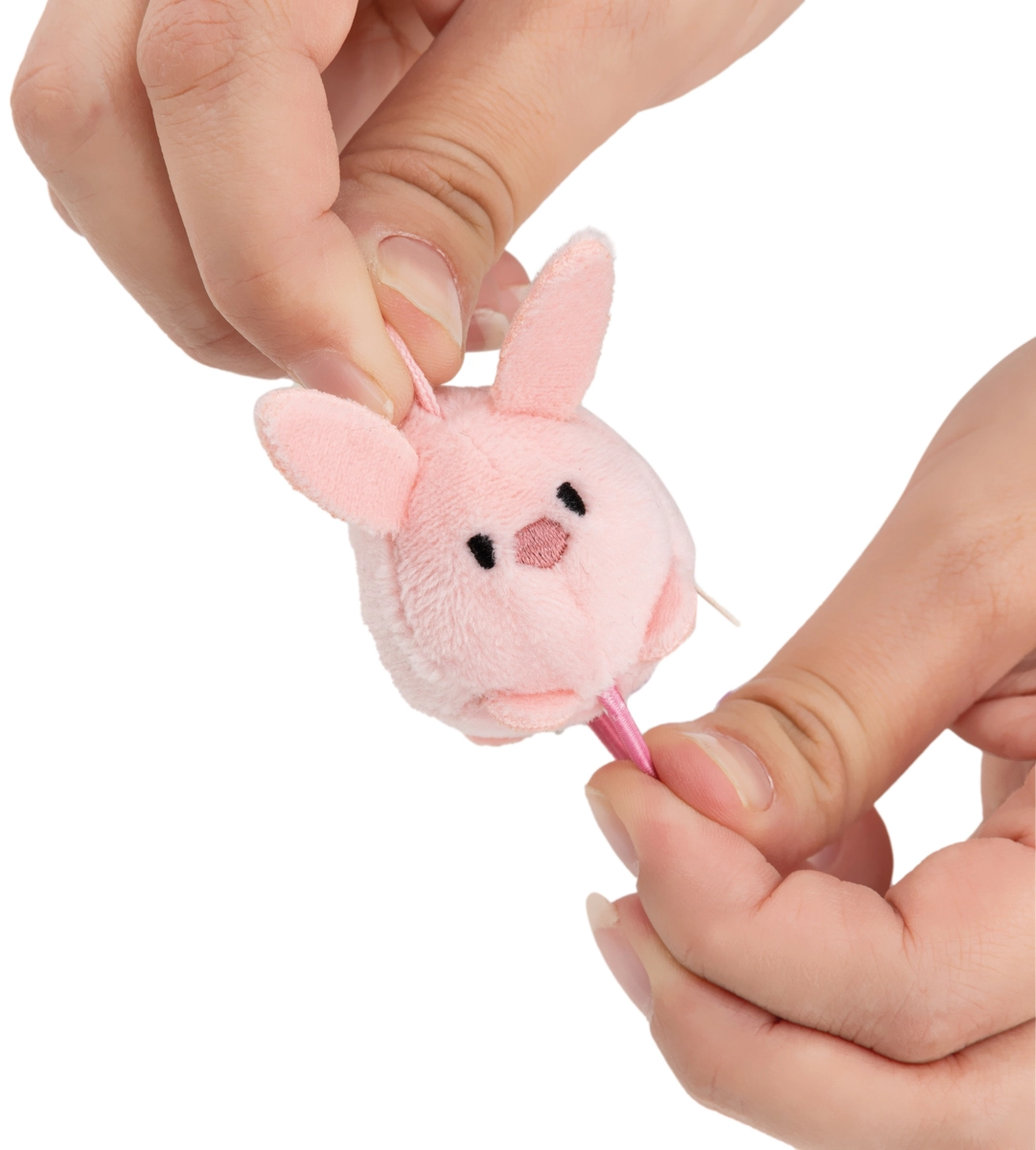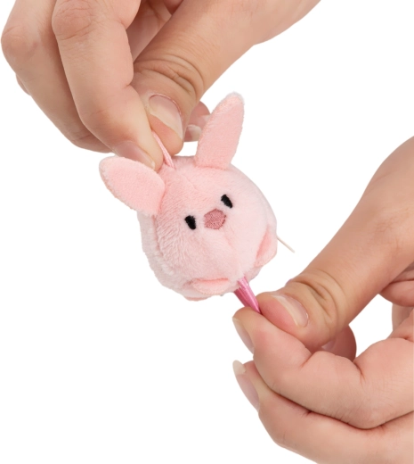 La forma rotonda e tenera, le lunghe orecchie e il delicato colore rosa fanno di Pibu un accessorio di stile e un dolce portafortuna.