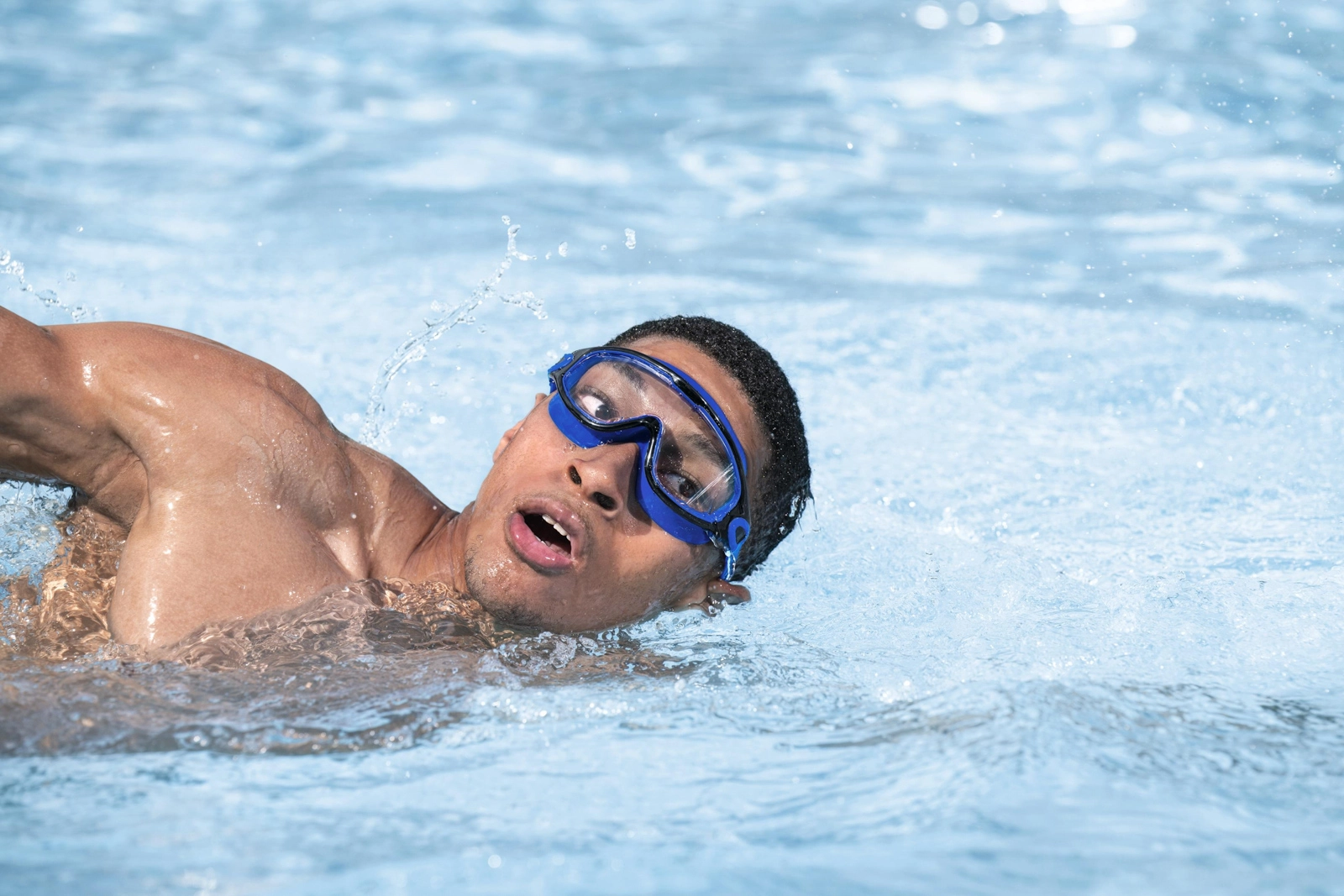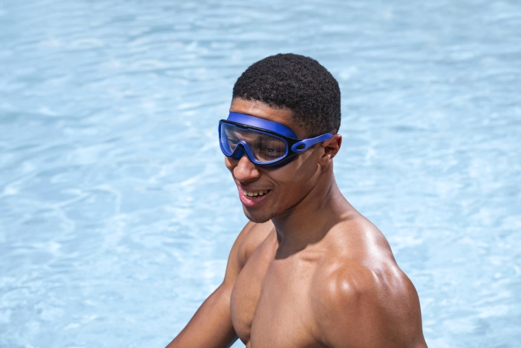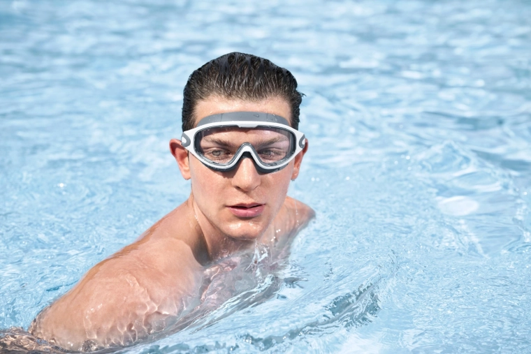 Le lenti bombate in policarbonato offrono una visuale ampia e nitida, con protezione UV e trattamento anti-fog per un nuoto senza pensieri.