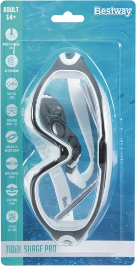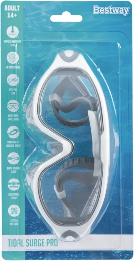 Scopri comfort e visione cristallina con gli occhialini da nuoto Tidal Surge Pro. Grazie alle lenti grandangolari in resistente policarbonato con filtro UV e trattamento antifog, puoi concentrarti sul nuoto senza appannamenti e fastidiosi riflessi. Le morbide guarnizioni aderiscono piacevolmente al viso e impediscono l’ingresso dell’acqua.