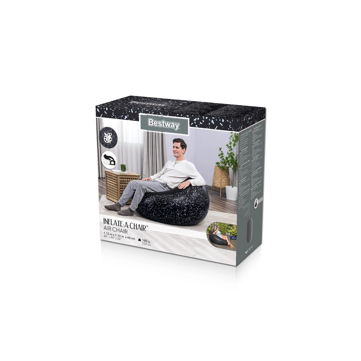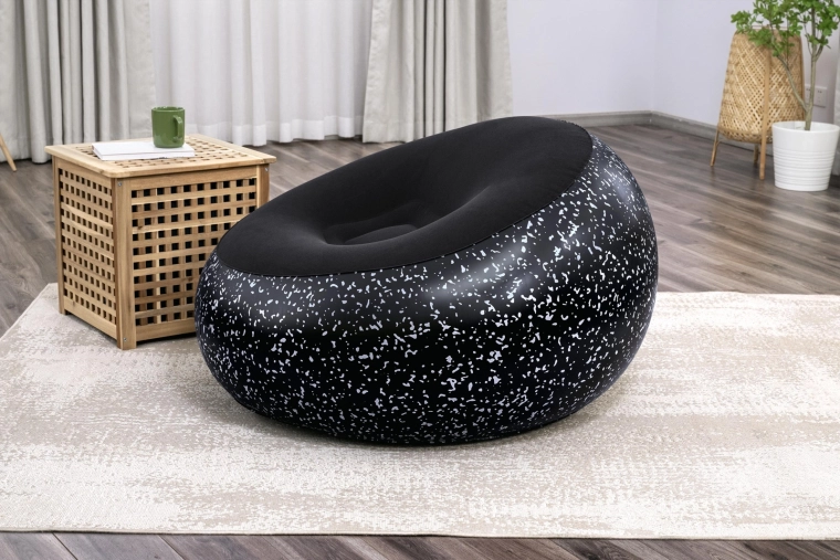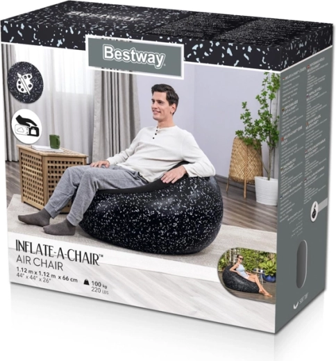 Comoda poltrona gonfiabile per casa e giardino con superficie vellutata morbida, struttura stabile Coil‑Beam e design a due camere per maggiore resistenza. Grazie alla valvola a doppio senso si gonfia e si sgonfia rapidamente, sostiene fino a 100 kg e nella confezione trovi anche una pezza di riparazione.